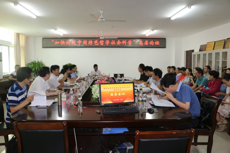2017年6月22日,“加快构建中国特色哲学社会科学”高层论坛在德赢vwin体育官网召开。北京大学陈占安教授,清华大学吴潜涛教授,海南省委教育工委专职副书记麦浪,海南省社科联专职副主席李星良,德赢vwin体育官网副校长王崇敏出席,来自全国各大高校的领导和近40名专家学者参加此次会议。会议开幕式由德赢vwin体育官网党委书记段捷频主持。
