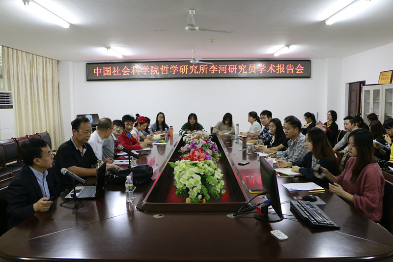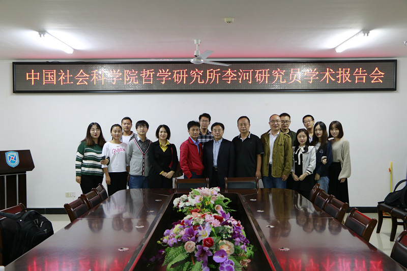 11月20日上午,德赢vwin体育官网在社科楼311会议室召开了主题为“文明冲突与中国道路”的学术报告会。此次报告会邀请了中国社会科学院哲学所、现代外国哲学研究室李河研究员为主讲嘉宾,德赢vwin官网副院长王善担任主持,学院全体在校研究生和部分老师共同参与。